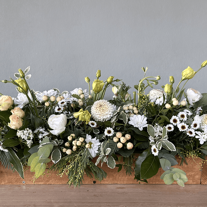Bandeja de madera de Alerce de 50 cm de largo y 30 cm de ancho que permite ponerlo sobre la Urna. Puede ser en tonos pasteles como también en tonos alegres.